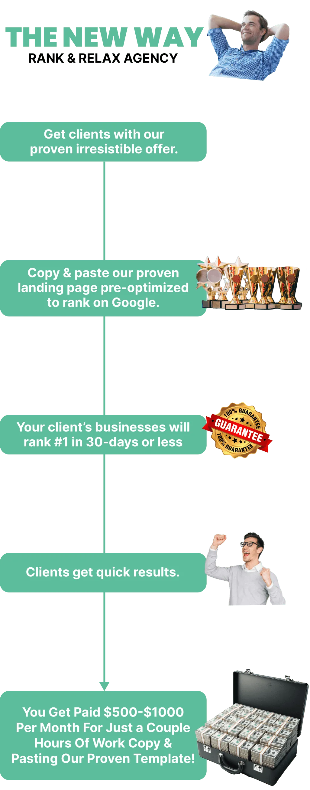 The Rank & Relax Agency Model is a new approach to digital marketing that enables you to rank businesses #1 on Google within 30 days or less. This model avoids traditional SEO, ongoing optimization, or intensive client management, focusing instead on a simple copy-and-paste setup process that requires only 2-3 hours of initial effort.